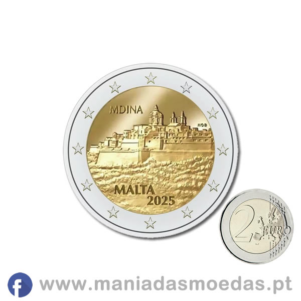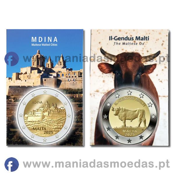 Conjunto com as 2 moedas comemorativas de 2€ de Malta de 2025