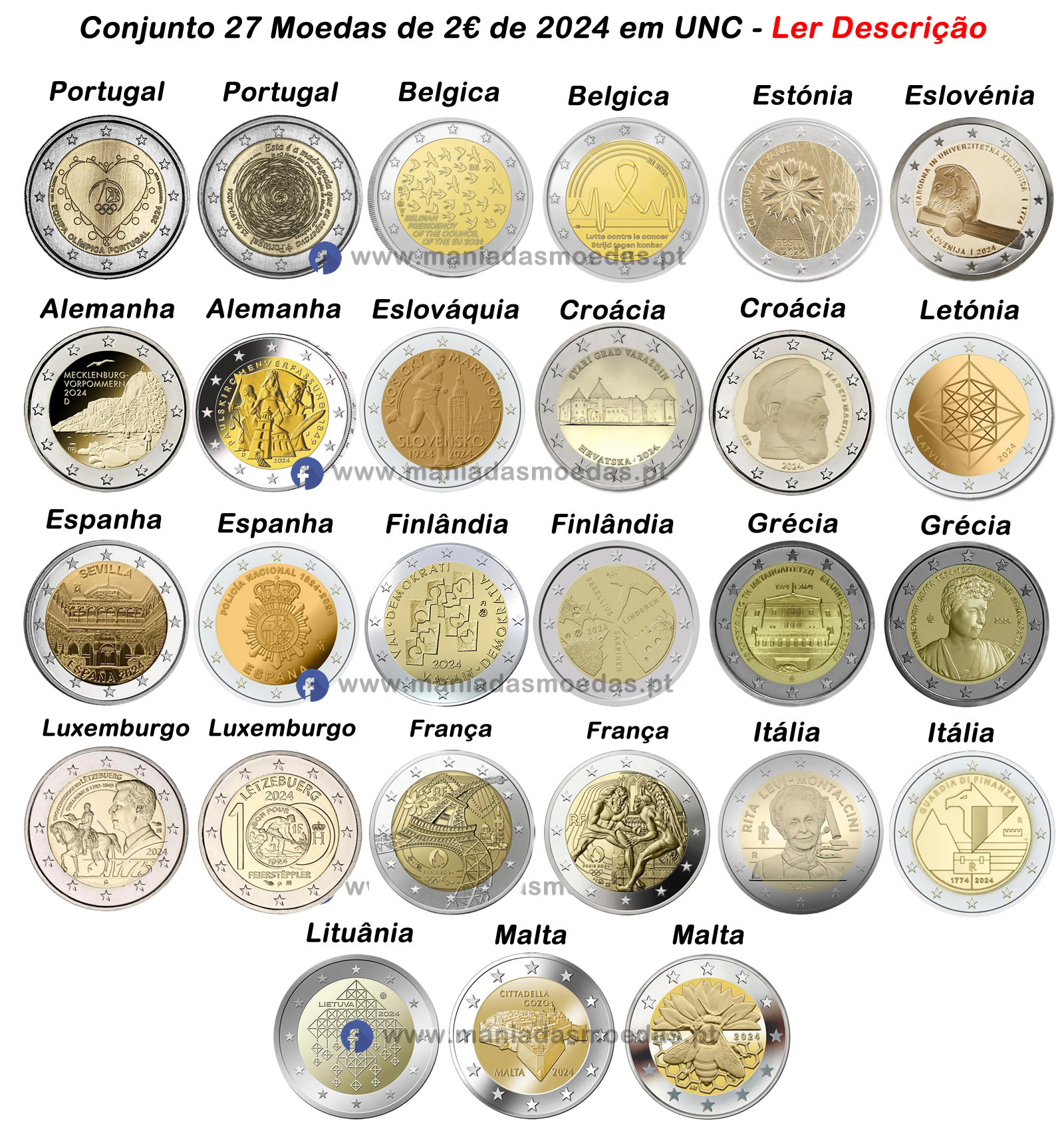 Conjunto com 27 Moedas comemorativas de 2 Euros de 2024:
