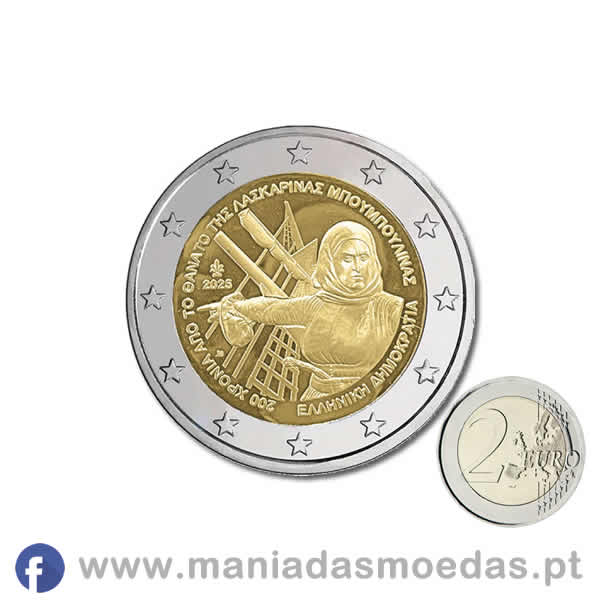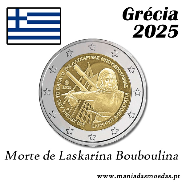Moeda de 2€ da Grécia de 2025 alusiva a morte de Laskarina Bouboulina