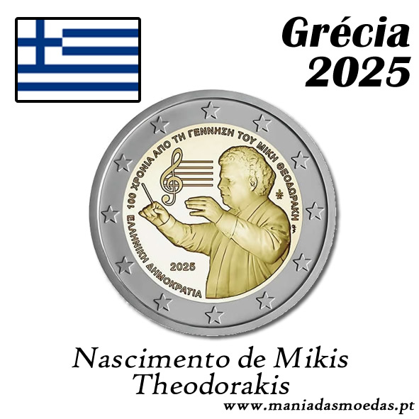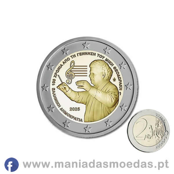 Moeda 2€ Grécia 2025 – Mikis Theodorakis