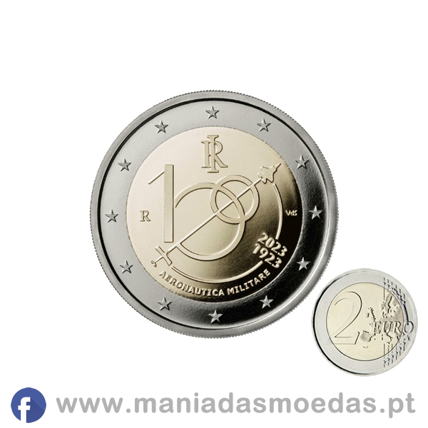 Moeda de 2€ da Itália de 2023 alusiva ao centenário da força aérea Italiana