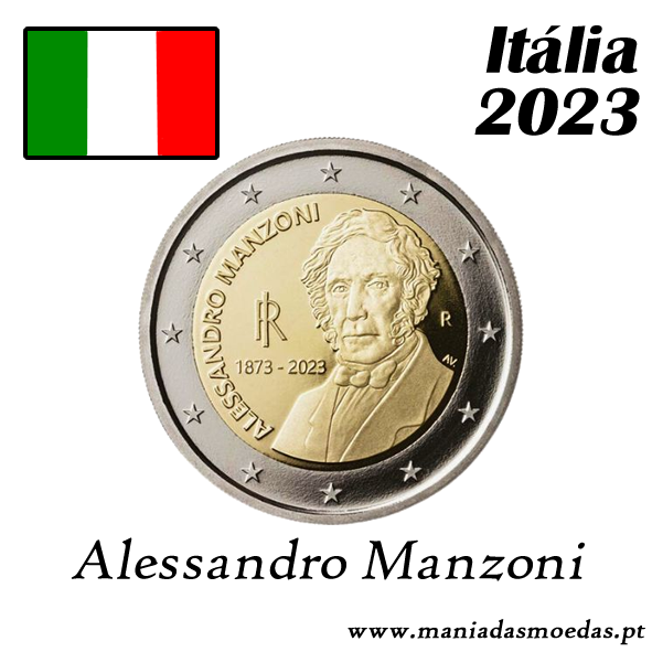 Moeda de 2€ de Itália de 2023 alusiva aos 150 anos da Morte de Alessandro Manzoni