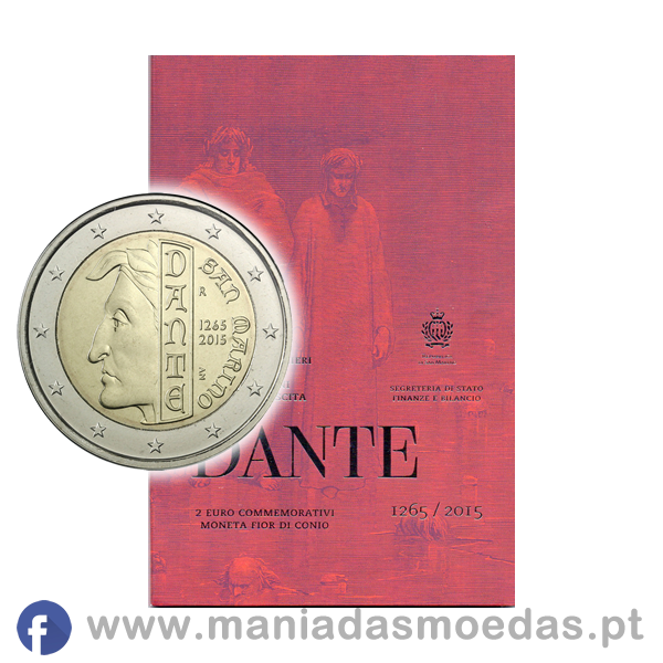 Moeda de 2€ de San Marino de 2015 alusiva aos 750 anos do nascimento de Dante Alighieri