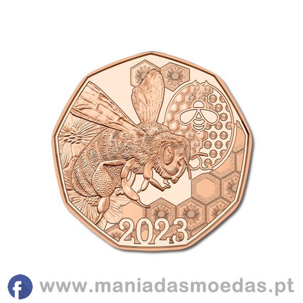 Moeda 5€ da Áustria de 2023 alusiva às Abelhas