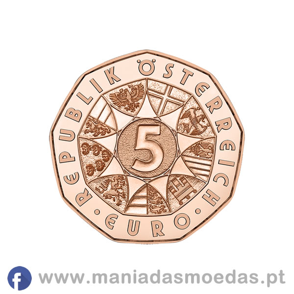 Moeda de 5€ da Áustria de 2024 alusiva ao Campeonato do Mundo de Esqui