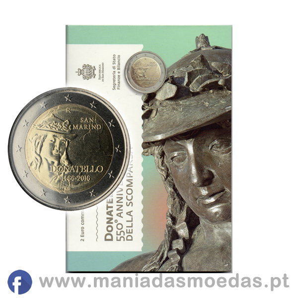 Moeda de 2€ de San Marino de 2016 alusiva aos 550 anos da morte de Donattelo